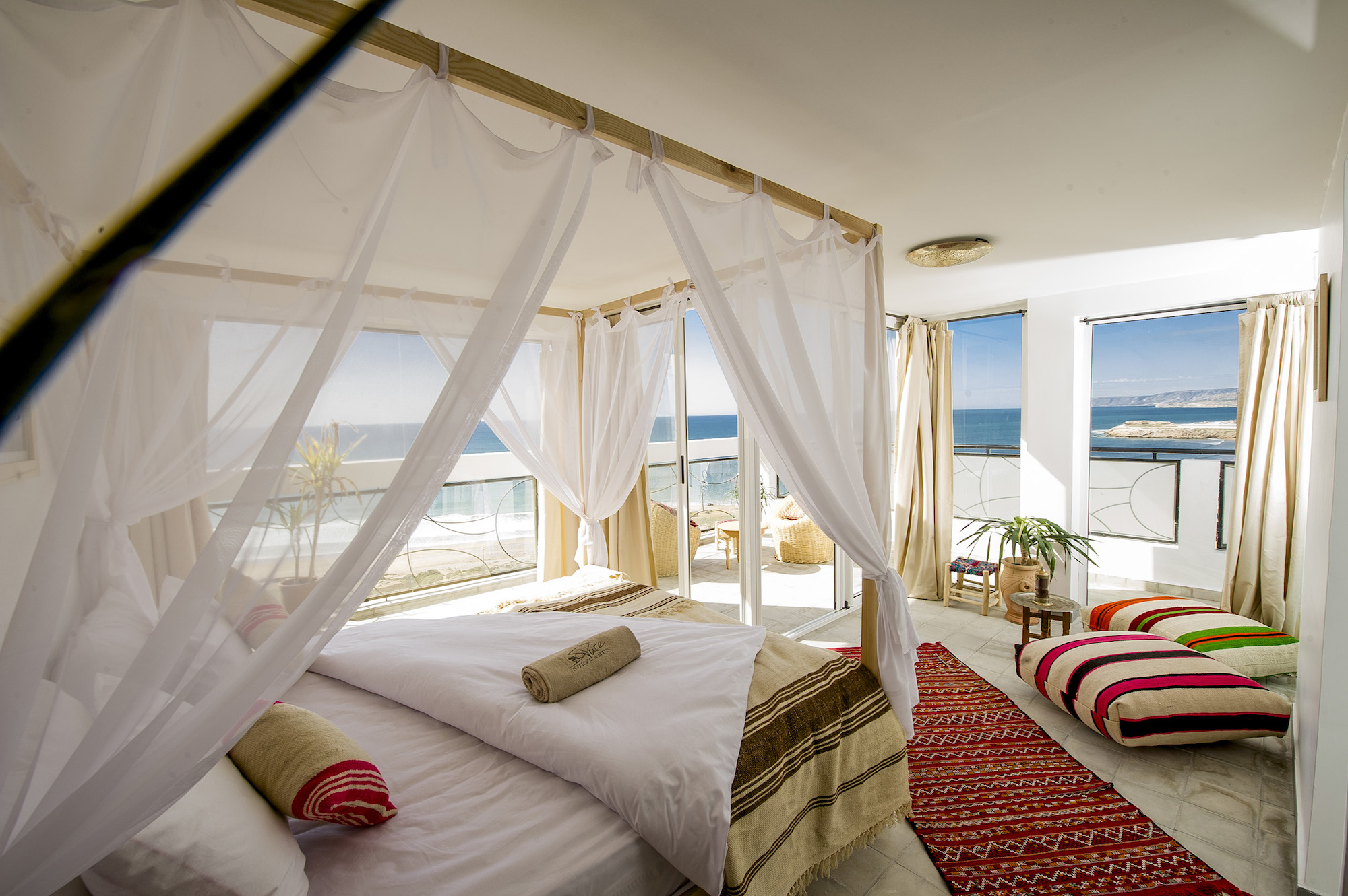 Beim Pure Surfcamp heißt es, wohnen direkt am Spot – mit 180-Grad-Meerblick inklusive. Das Sea View Surfcamp Marokko in direkter Strandnähe und der Spotcheck finktioniert von den Zimmern bzw. vom Pool. So soll es sein. Zahlreiche Surfspots in der Umgebung, geeignet ist das Camp demnäch für alle Surflevels. Frühstück, Lunchpaket, Mittagssnack und Abendessen sowie Yoga sind im Paket enthalten.