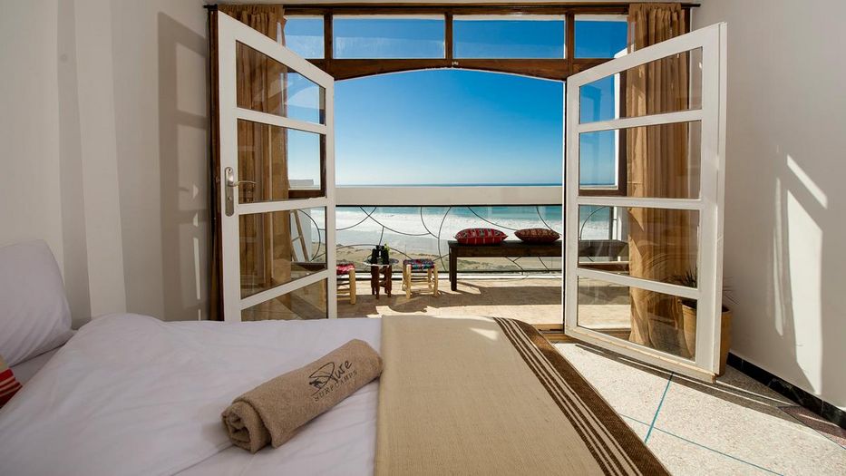 Beim Pure Surfcamp heißt es, wohnen direkt am Spot – mit 180-Grad-Meerblick inklusive. Das Sea View Surfcamp Marokko in direkter Strandnähe und der Spotcheck finktioniert von den Zimmern bzw. vom Pool. So soll es sein. Zahlreiche Surfspots in der Umgebung, geeignet ist das Camp demnäch für alle Surflevels. Frühstück, Lunchpaket, Mittagssnack und Abendessen sowie Yoga sind im Paket enthalten.