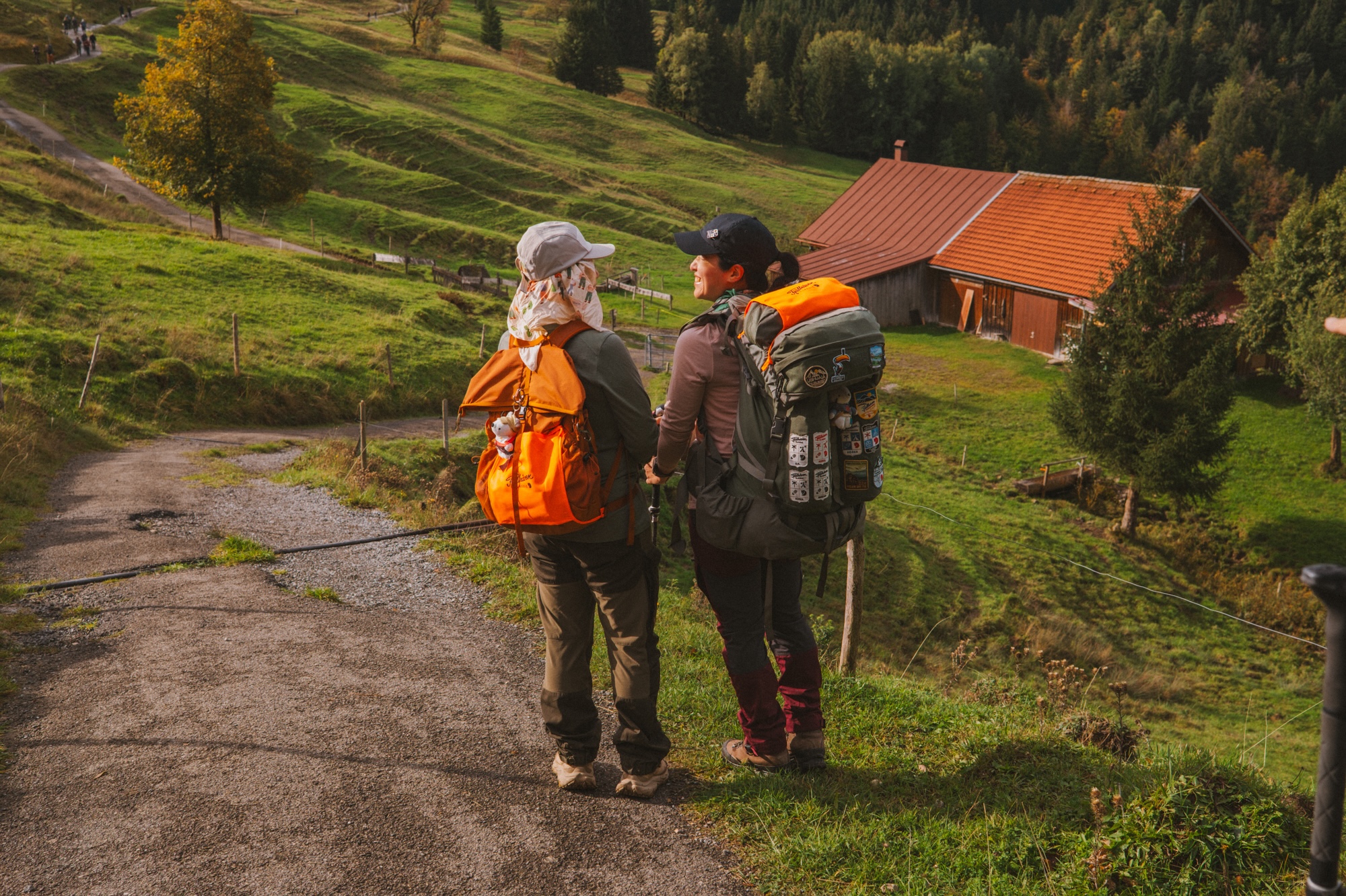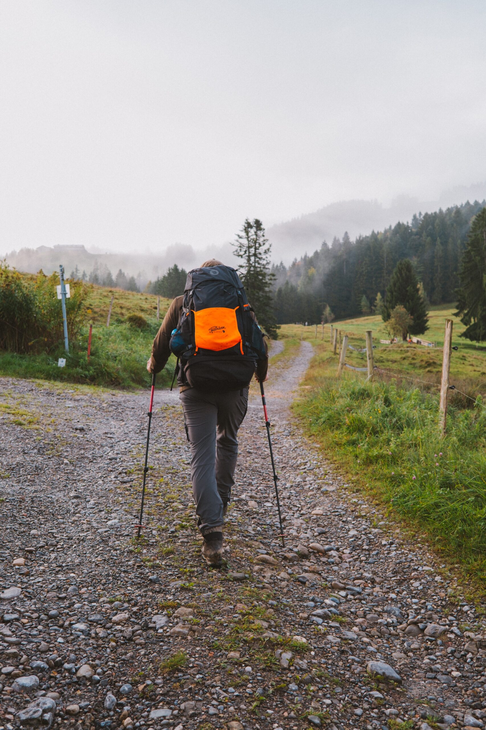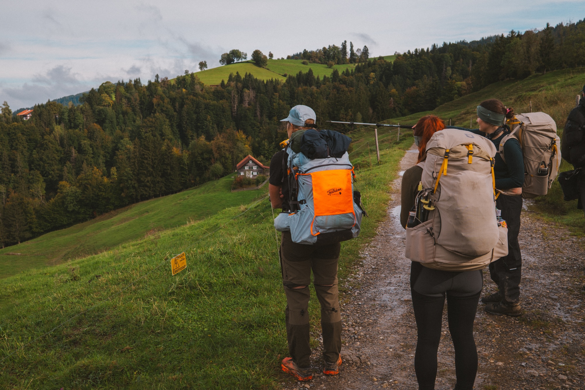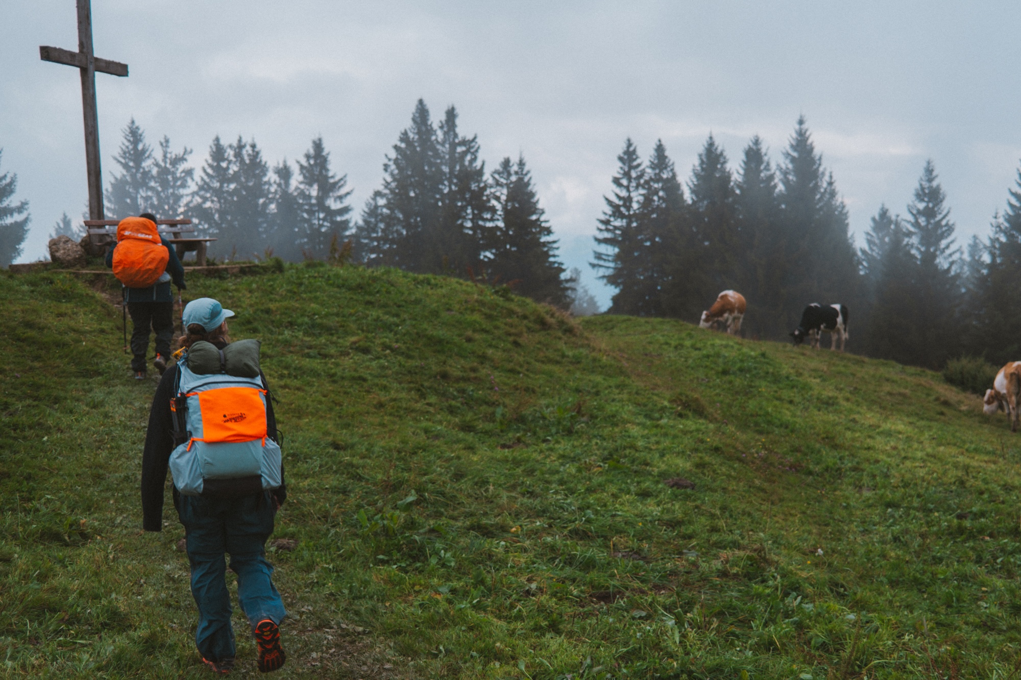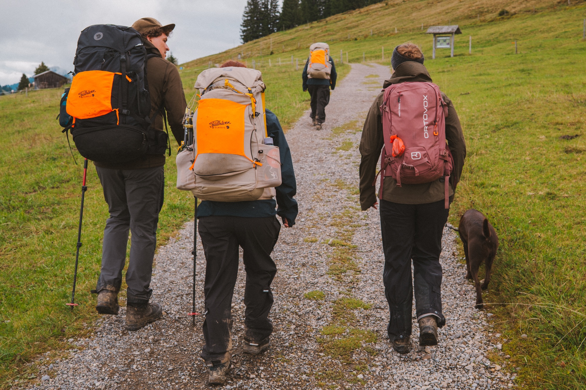 Gestärkt wanderten wir weiter über den Checkpoint Prodelalpe Richtung Camp 1 an der Talstation des Hochgrats. Mit 17,3 Kilometern und 724 Höhenmetern war das ein erster Test für unsere Kondition – doch das Wetter machte uns einen Strich durch die Rechnung.