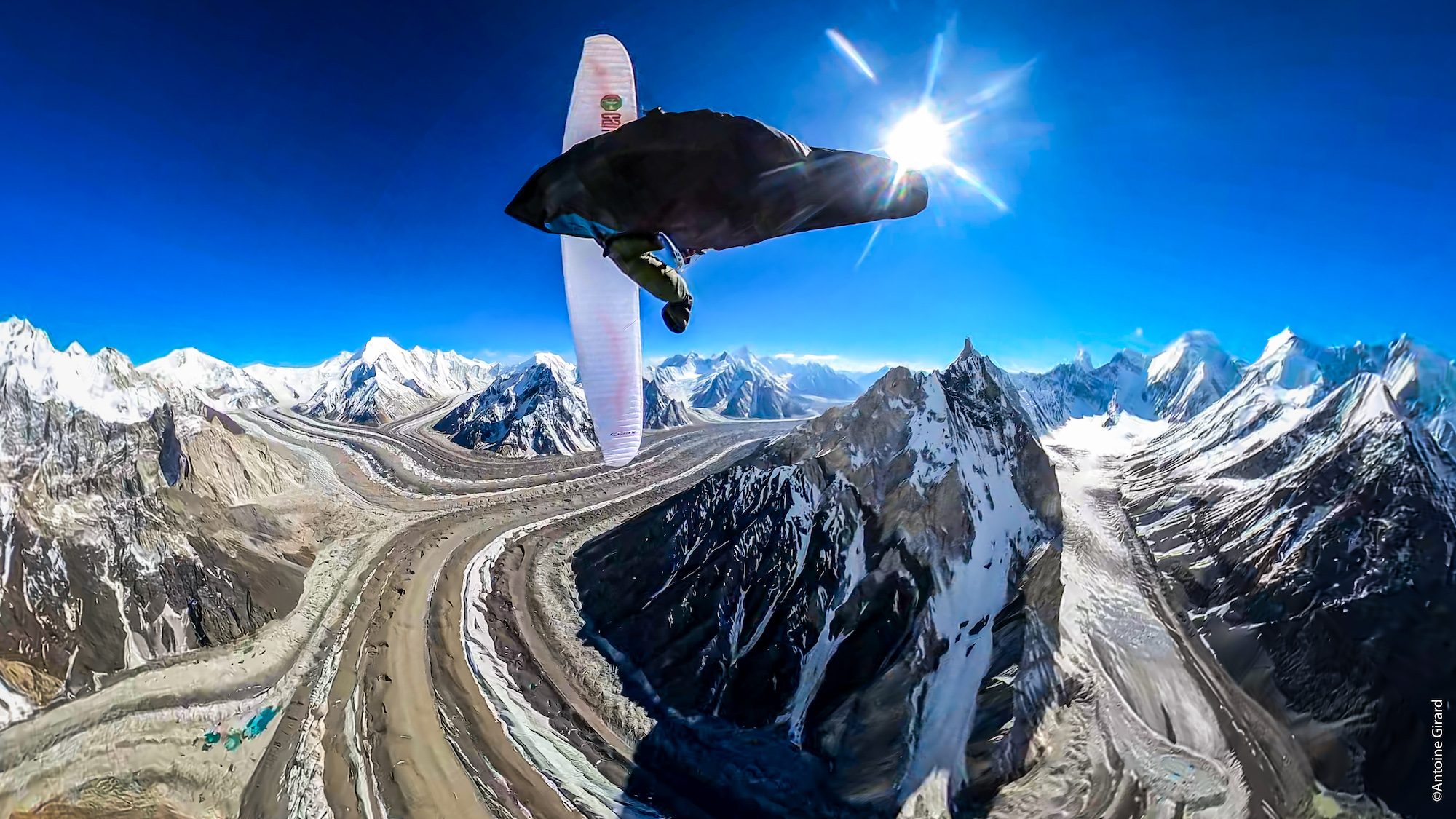 Bei dem Film “Summits in the Sky” auf der EOFT 2023 steuert der französische Paraglider Antoine Girard das Karakorum-Gebirge an und erkundet mit seinem Gleitschirm die Luftregionen zwischen den imposanten Gipfeln, die sich auf Acht- und Siebentausend Metern erstrecken.