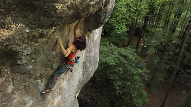 Die Französin klettert im Frankenjura als weltweit erste Frau die berühmte Güllich-Route