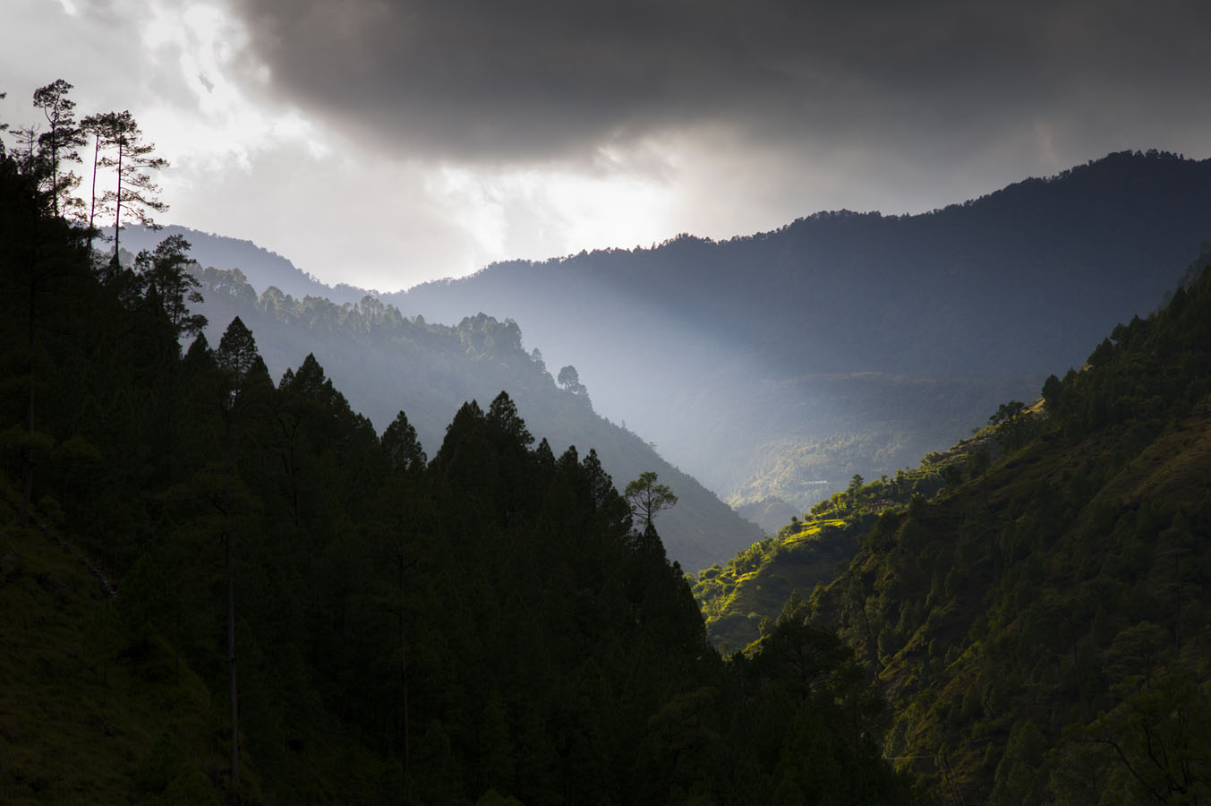 Khati liegt am Eingang des steilen Pindari-Tals. Hier führt uns der Trail in den nächsten zwei Tagen zu unserem Gletscher-Endpunkt Zero Point. Wir erreichen das Dorf Dwali, das nicht mehr ist, als eine kalte Wanderhütte der Regierung und ein verrauchtes, aber willkommenes Teehaus. Wir erreichen es gerade noch bevor ein Sturm heranrollt. Gerettet vor der natürlichen Dusche, wissen wir, dass wir noch einen langen Tag vor uns haben. Wir starten um fünf, als es noch dunkel ist. Das Ziel ist es, den Gletscher zu erreichen, bevor ein weiterer Sturm unseren griffigen felsigen Trail in eine ölige Rutschpartie verwandelt.