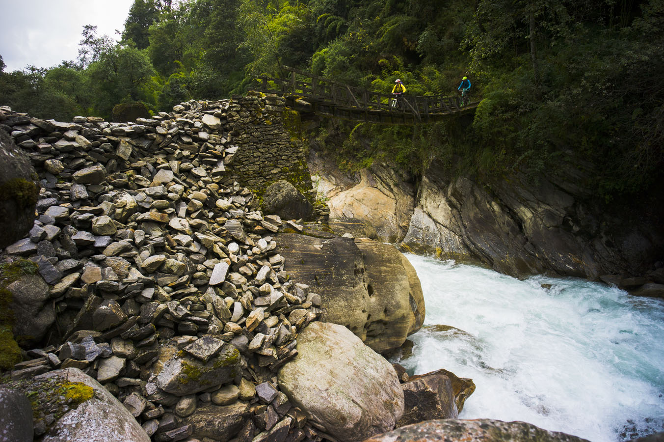 Der Trail an sich ist vorwiegend mit bröckelnden Steinblöcken gepflastert. Ein britischer Gesandter, dessen Name ironischerweise G.W. Traill war, hat ihn 1830 errichten lassen. Traill war der Meinung, dass seine Kolonial-Elite einen Wanderweg bräuchte, um leichter den Gletscher zu erreichen. Während wir uns diese steilen Berge hinaufkämpfen, traversieren und wieder abfahren, wundern wir uns, welch enorme Mühe es gekostet haben muss, diese unzähligen Steinplatten zu verlegen. Und das nur, damit man damals ein bisschen spazierengehen konnte. Wir beschweren uns natürlich nicht, denn hier zu fahren ist einzigartig; steile, griffige Anstiege und technisch schwierige Abfahrten.