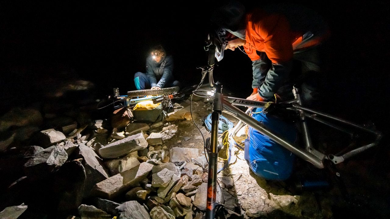 Am nächsten Tag packten wir euphorisch unsere Ausrüstung und schmiedeten Pläne: Startzeit heute Abend 21Uhr. Dann die Nacht durchlaufen und um etwa 5Uhr morgens die Passhöhe erreichen, bevor die Gruppen von der anderen Seite sich an den dort installierten Fixseilen nach unten bewegten und uns lose Steine auf den Kopf werfen konnten. Sicherheit geht vor Schlaf. Für den Weiterweg zum nächsten Lager rechneten wir mit vier Stunden. Die Ausrüstung war durchaus über dem Standard einer klassischen Moutainbiketour: Warme Bekleidung für bis zu -15Grad, dicke Bergschuhe, Steigeisen, Wanderstöcke, Stirnlampe, Klettergurt und eine Steigklemme, damit wir uns in den Fixseilen einhängen konnten, um nicht abzustürzen. Das Briefing von Isaak, zu der vor uns liegenden Strecke, fiel heute überraschend aus. Statt des sonst freundlichen „Too easy“ bekamen wir mit ernster Miene die Auskunft: „Not easy. Little hard. But, Inshalla, you can do it.“ Verunsichert sahen wir uns an.