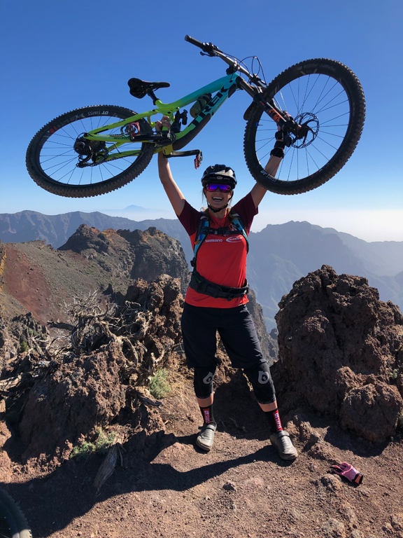 Das Mountainbiken wurde Steffi in die Wiege gelegt. Ihr Vater war einer dieser begeisterten Fans, die an der Bande der BMX-Bahn standen und Steffi zugejubelt haben, als sie mit ihrem BMX, das kaum größer war als sie, über die Ziellinie raste. Zu 26-Zoll-Mountainbikes kam sie dann, als sie ein “Trek Gravity Girl” vor circa neun Jahren wurde. Seitdem ist keine Mountainbike-Destination vor der sympathischen Deutschen sicher. Am meisten angetan hat es ihr La Palma, eine kleine Insel der Kanaren.