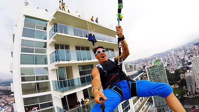 Ungeladener Gast: Basejumper John van Horne landet im Pool auf einer Party im 34. Stock