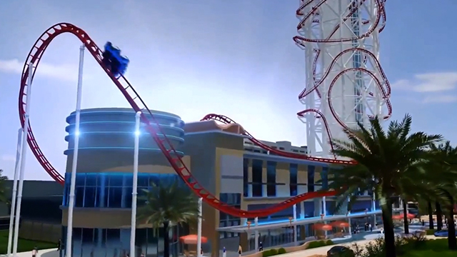 Die größte Achterbahn der Welt schlängelt sich bis auf über 170 Meter um einen Wolkenkratzer