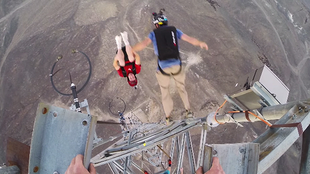 Mark Broderick holt sich das Extrem-Triple: Aufstieg zur Spitze der Antenne und neunfacher Salto beim Basejump
