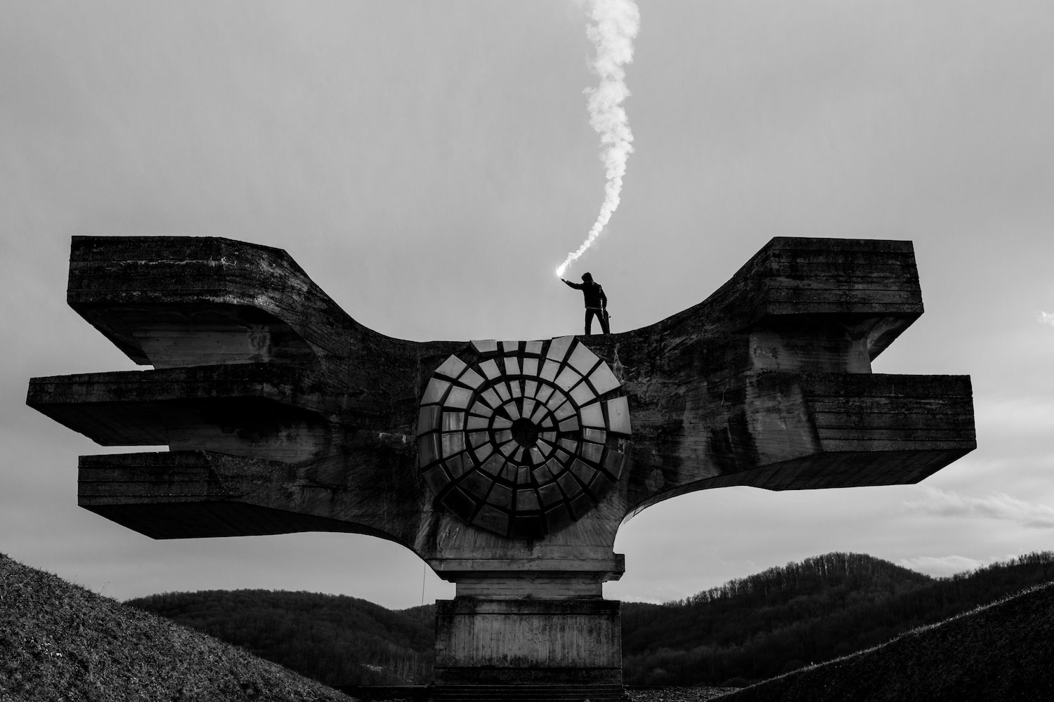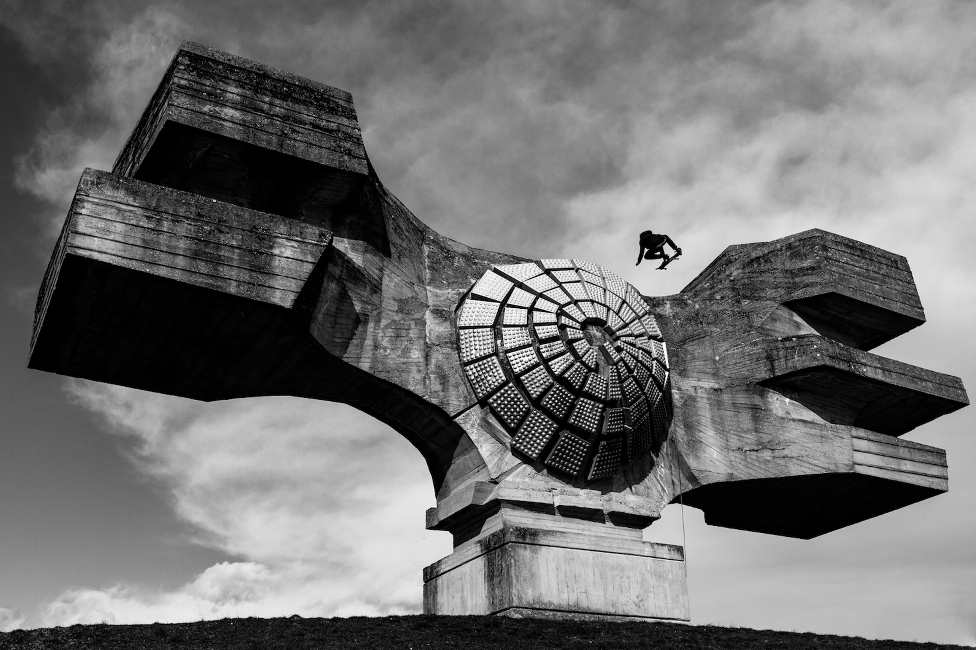 “Das Denkmal steht in Kroatien, nahe der slowenischen Grenze”, erzählt Luke gegenüber Mpora. Beide stammen aus der Slowenien, einem Land mit belebter Skateszene. “Es ist eigentlich ein Monument der Revolution, gebaut nach dem Zweiten Weltkrieg von Dusan Dzamonja, einem zeitgenössischen Bildhauer aus Mazedonien. Dies war eine seiner besten Arbeiten. Ich bin eines Tages im Internet darüber gestolpert. Und als ich es sah, kam die Idee automatisch auf. [Ich dachte]: ‘Let’s ride this thing.'”