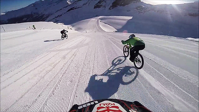 Man muss ja nicht immer mit Snowboard oder Ski im Powder unterwegs sein. Profi-Biker Mads “Makken” Haugen schnappt sich den Snowscooter und sein Downhill-Bike und stampft erstmal eine fette Powderline in den Hang.