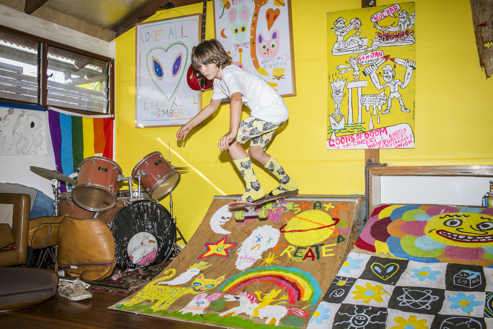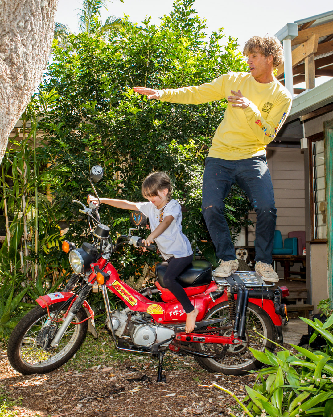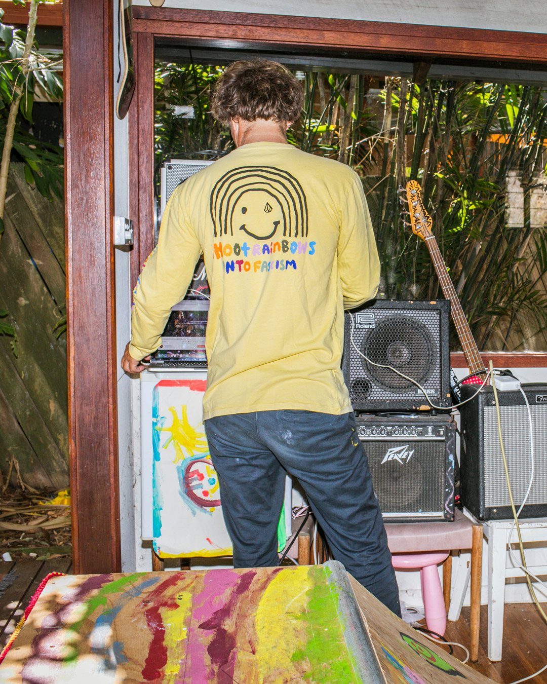 Die farbenfrohe Kollektion soll nicht nur Lebensfreude vermitteln, sondern auch ein Statement gegen Faschismus setzen. Der Teamrider lebt mittlerweile mit seiner Familie in Byron Bay, die auch bei der Konzeption der VOLCOM Kollektion maßgeblich mitgewirkt hat.