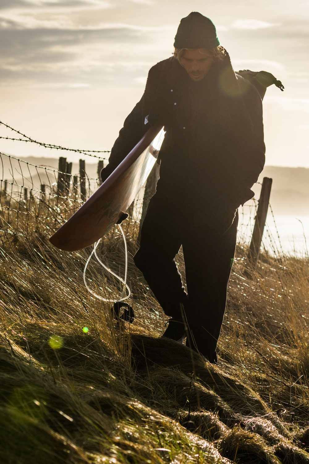 The Cliffs – ein magischer Ort. Tom Lowe hatte mit mir über die Energie dieses Spots gesprochen, lange bevor ich es dorthin geschafft habe. Viele Fotos und Videos hatte ich gesehen, und schließlich stand ich Jahre später vor dieser Klippe mit Blick auf Europas ikonischen Big-Wave-Slab. Wenn man sich diese Arena anschaut, fühlt man sich unmittelbar klein. So viel Energie im Zusammenspiel von Ozean und Felsen. Wenn man die Klippen herabschaut, sieht die Welle nicht unbedingt groß aus, man nimmt nicht viel davon wahr, bis man tatsächlich da drin ist – und das ist eine Stunde später. Es ist eine abenteuerliche Mission, nicht nur auf dieser Welle zu surfen, sondern auch dorthin zu kommen. Ich hatte die Ehre, von den Locals geleitet zu werden, Tommy Lowe, Dan Scarowsky, Jack Johns, einer Crew, die meine Leidenschaft für dicke, kalte, schwere Wellen und anschließende Pints im Pub teilt. Einige der besten Leute, die ich getroffen habe: bodenständig, bescheiden und mutig. Genau, wie man es mag.