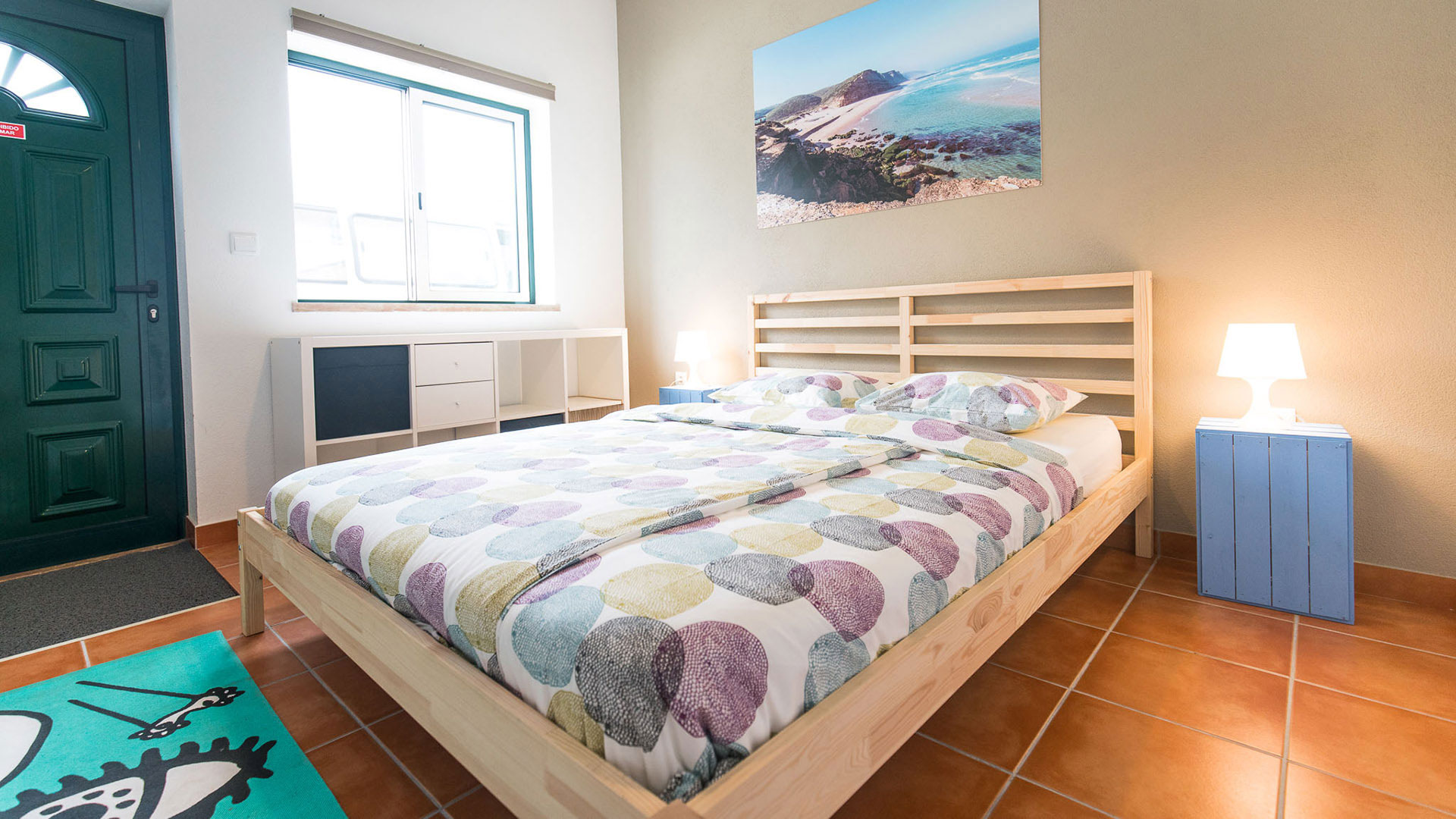 Das Wavetours Surfhouse Ericeira besteht aus insgesamt vier Schlafzimmern im Haus, die je nach Belieben zu zweit oder mit mehreren bezogen werden. Gegen Aufpreis kann auch eine 1-er oder 3-er Belegung gebucht werden. Die einzelnen Zimmer in dem Surfcamp haben direkten Zugang zu den Badezimmern mit Dusche und WC auf dem Flur. Im Erdgeschoss gibt es einen großen Aufenthaltsbereich mit TV, WiFi sowie eine vollausgestattete Küche nebendran.