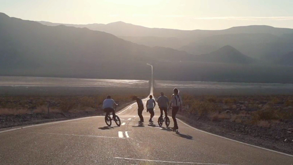 Fünf Pro-Rider pflügen mit Skateboard, BMX und Snowboard durch Kalifonien