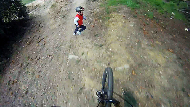 Es ist schon verblüffend, wie unachtsam sich Menschen auf Mountainbike-Strecken verhalten! Immerhin erreichen hier die Biker Geschwindkeiten von 50-60 km/h! In diesem Clip sollte die Mutter...