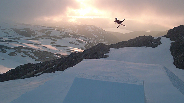 Der Freeskiing-Pro gibt sich den Panorama-Kicker mit satter Airtime und einer ordentlichen Portion Style
