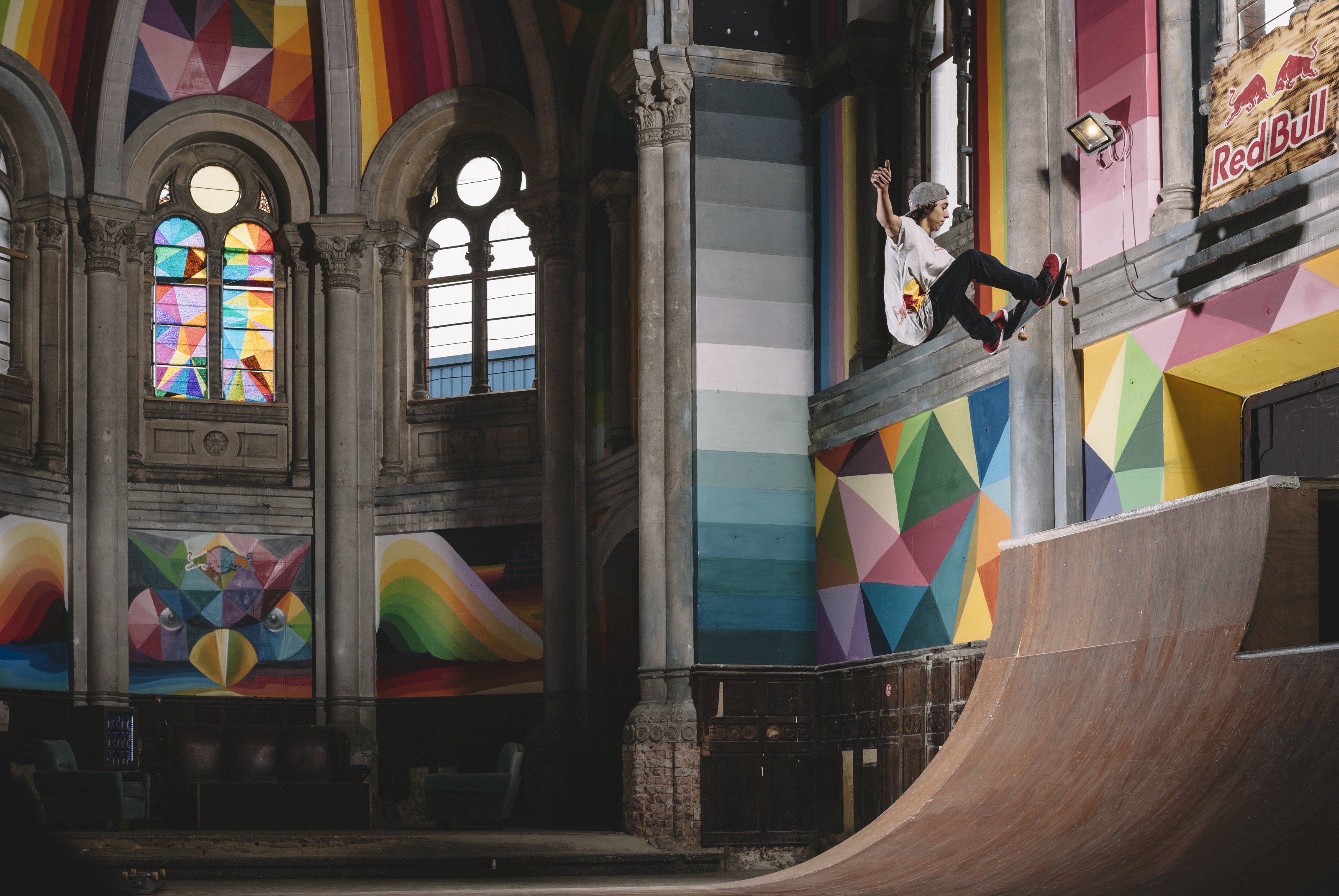 Eine Gruppe von Skateboardern hat gemeinsam mit Künstler Okuda San Miguel das verlassene Gotteshaus in einen einzigartigen Skatepark umgestaltet
