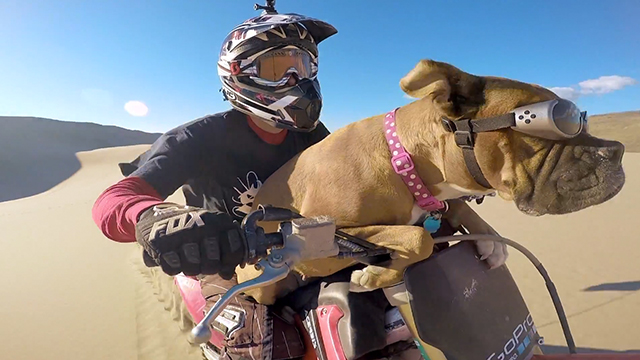 Cooler Hund in der Wüste auf dem Dirt Bike Trip durch die Sanddünen