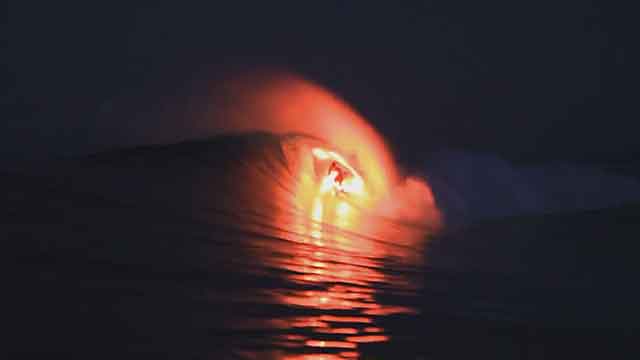 Mit einem bengalischen Feuer am Surfboard kann man auch nächtliche Barrels abgreifen...