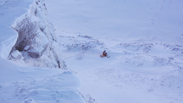 Was zur Hölle hat Stuntman Antti Pendikainen vor? Er rast mit seinem Sled auf eine riesige Klippe zu...