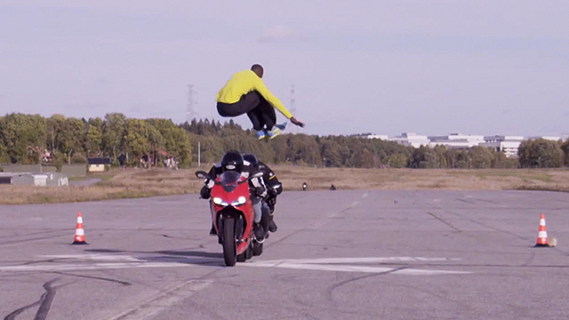 Nicht nachmachen: Dieser Typ überspringt zwei Motorräder, die mit 110 km/h auf ihn zurasen!