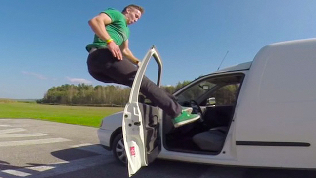 Freerunner Dominik Sky springt, hüpft und zwirbelt sich durch jedes Fenster...