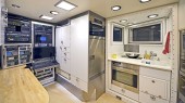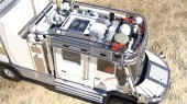 Natürlich hat das Fahrzeug im abkuppelbaren Anhänger auch einen Wohnraum. Neben Betten bietet der KiraVan eine voll ausgestattete Küche (inkl. Ofen, Mikrowelle und Arbeitsplatten) mit genügend Platz für Lebensmittel-Rationen, die für zwei Wochen und seine dreiköpfige Familie reichen. Ein umweltfreundliches Bad und ein eigenes „Penthouse“ für seine Tochter, welches nach ihren Wünschen ausgestattet wurde, rundet das Ganze ab.